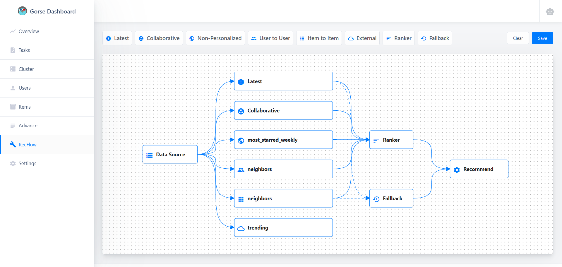 docker run -p 8088:8088 zhenghaoz/gorse-in-one --playgroundThe playground mode will download data from GitRec and import it into Gorse. The dashboard is available at http://localhost:8088.